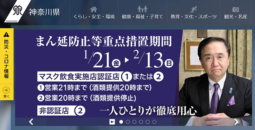 ・まん延防止等重点措置に基づく協力を要請します~知事メッセージ(令和4年1月19日)(神奈川県)