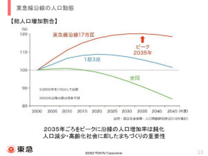 そして東急線沿線では、これまでは2020年に人口のピークを迎える予測でしたが、最新のデータでは2035年まで人口の増加傾向が続く予測となっています。