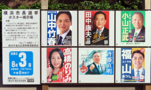 立候補した6氏の選挙ポスター(港北区内)