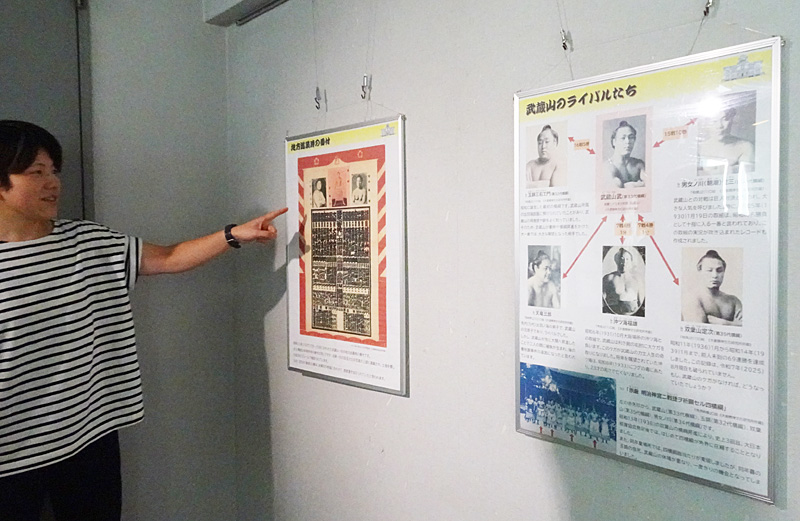 今回の資料展では、大正期に日吉や綱島周辺で“草相撲”をして過ごした武蔵山の少年時代から相撲界での活躍、横綱に昇進後の悲運と引退後の姿まで、約130点の資料をまとめた44枚のパネルで振り返る内容となっています。