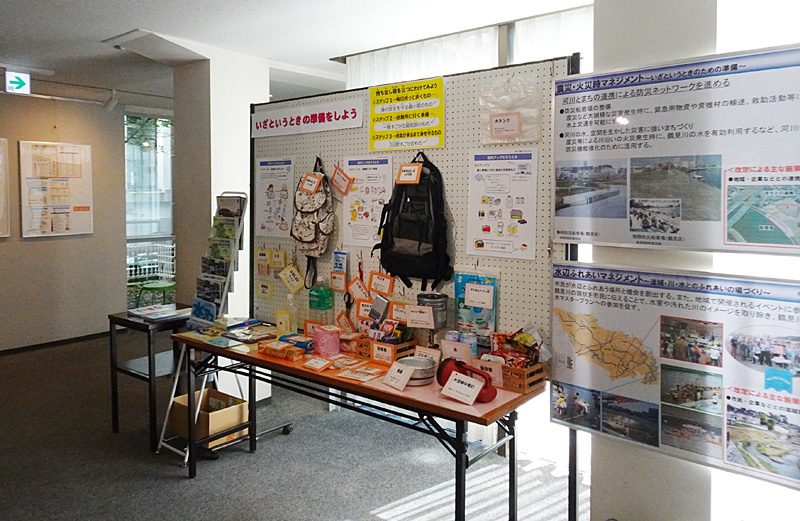会場ではNPO法人鶴見川流域ネットワーキングによる鶴見川などの災害と防災に関する展示も同時に行われています。