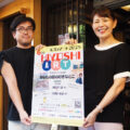 第1回開催時から企画の中心を担う日吉普通部通り会の島名貴子さん(右)、水口辰之さん。島名さんが経営する「遊ZENたつ吉」本店前で。個人情報の収集についても最低限のみ記載し募集する方法に刷新。募集店舗も1店舗に絞ることで個人情報の保護を試みる(2025年8月)