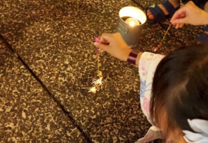未就学児や小学生に「親子で夏の風物詩を味わってほしい」と2023年夏に初開催した同イベントは、縁日の出店に加え、線香花火を味わえるのが特徴で、甚平や浴衣を着用して参加した子どもに菓子・線香花火をプレゼントしています。(線香花火は6本100円でも販売)