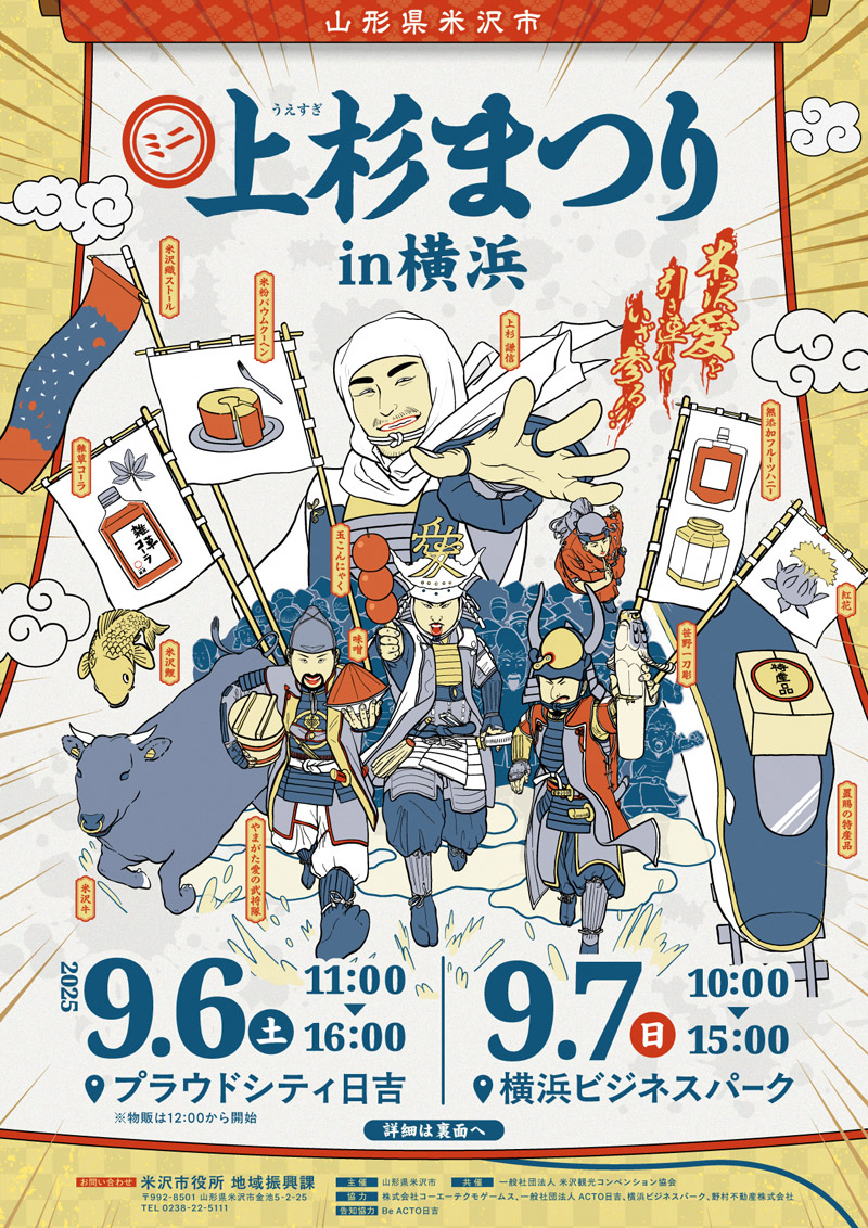 山形県米沢市(近藤洋介市長)と一般社団法人米沢観光コンベンション協会は、はあす(2025年)9月6日(土)11時から16時まで(物販は12時から開始予定)、「ミニ上杉まつりin横浜」イベントを、綱島街道沿いのプラウドシティ日吉中央広場(箕輪町2)で開催します。