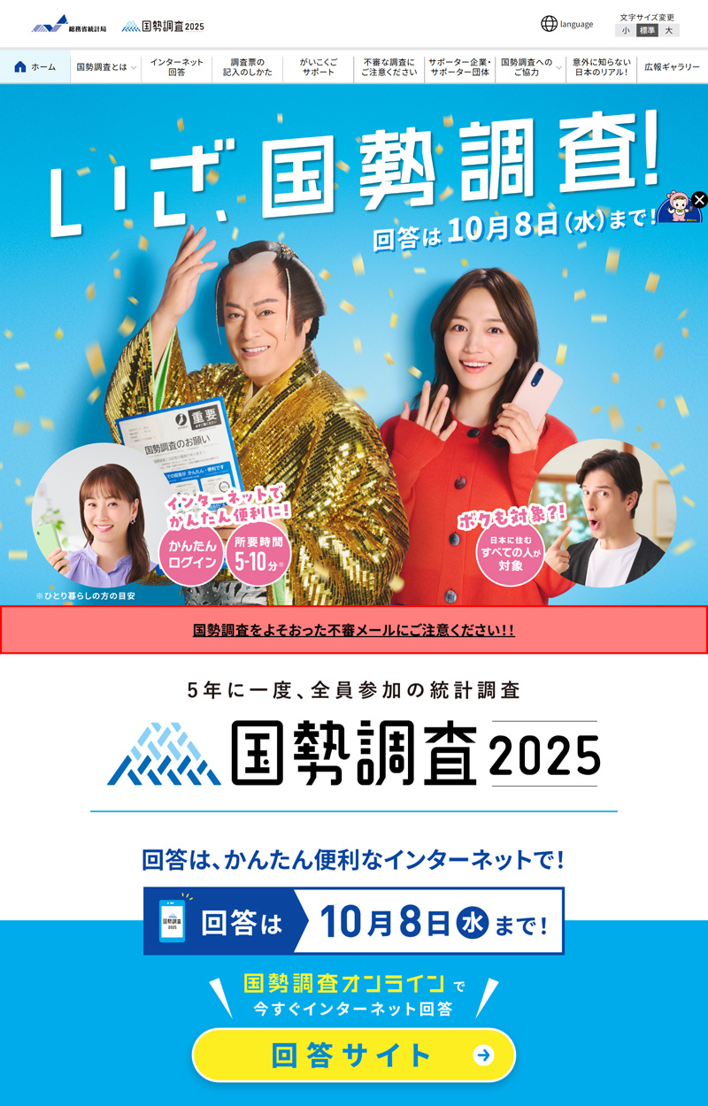 ・総務省統計局「国勢調査2025キャンペーンサイト」(回答は2025年10月8日まで)