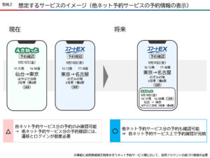 機能拡充に加え、今後の展開として、えきねっとは、JR東海の「EXサービス」や、JR西日本の「e5489」、JR九州の「JR九州インターネット列車予約サービス」と2027年度以降に連携し、一度のログイン認証で4つの予約サービスを移動したり、予約確認ができるようにしたりする計画です。