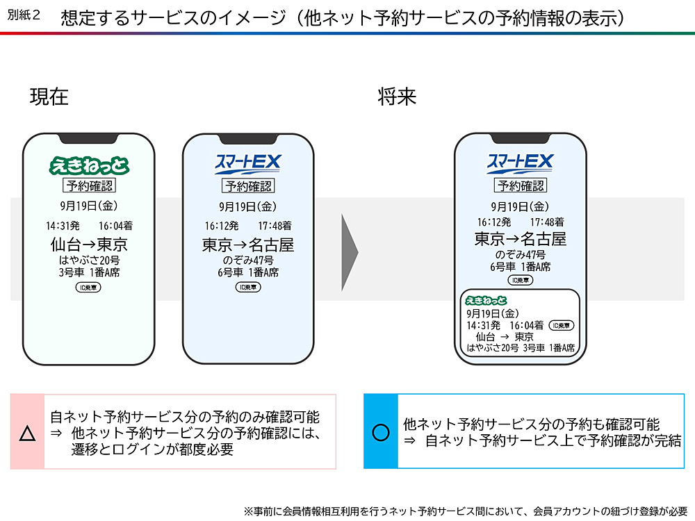 ・JR4社のネット予約サービス間の連携による利便性向上に向けた取組み~「えきねっと」「EXサービス」「e5489」「JR九州インターネット列車予約サービス」をより便利にお使いいただけます(PDF、2025年9月19日、JR東日本)