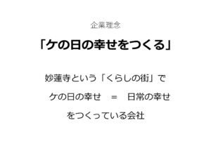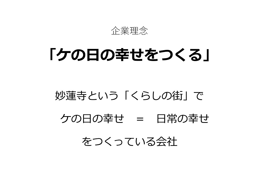 うちの企業理念は「ケの日の幸せをつくる」ということで、“ケの日”とは何かというと「ハレとケ」というお祭り(晴れ)と日常(褻=け)みたいな意味です。