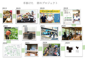 右上はデザイナーさんを街に誘致し(デザイナー・藤田雅臣さんが代表をつとめる「tegusu(テグス)」、2024年~)、今この方たちと一緒に街のリブランディングをさせてもらっています。