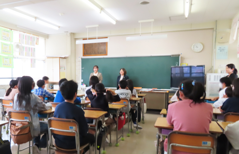 神奈川県弁護士会(中区日本大通)によるプログラムとなっており、日吉出身で川崎さくら法律事務所(川崎区宮前町)所属の弁護士・谷貝(やかい)弓子さんが初めて登壇、各学年約80人ずつの児童をクラスごとに1日3回、連続しての授業に挑みました。