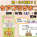 今週末11月15日(土)と16日(日)の10時から15時まで下田地域ケアプラザで開催「祝・25周年!ケアプラザまつり」の案内チラシ。下田町のみならず、日吉本町西町会エリアも含む日吉台西中学校の学区を対応エリアとしている