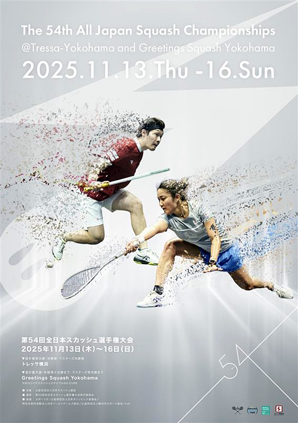 2025年11月13日(木)から16日(日)まで港北区内で開かれる「第54回全日本スカッシュ選手権大会」のポスター(日本スカッシュ協会のニュースリリースより)