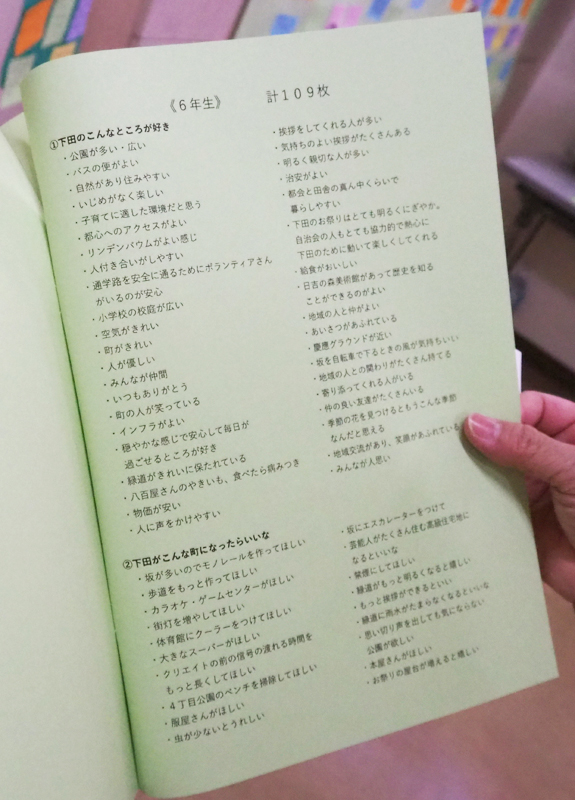 メッセージの募集が行われたのは、今年9月から10月まで。各学年100枚前後のメッセージが寄せられたといい、「下田のどんなところが好き?」、「下田がもっとどんな町になったらいいと思う?」との2つの質問による募集を行ったといいます。