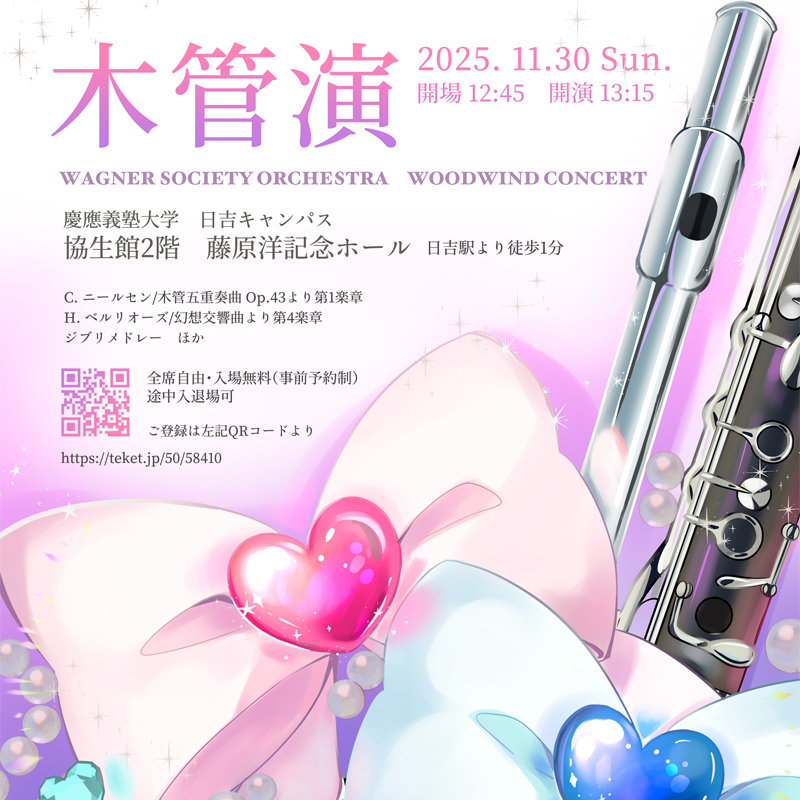 “木管の響き”で冬待つ日吉を彩る、11月30日(日)ワグネル・パート別演奏会