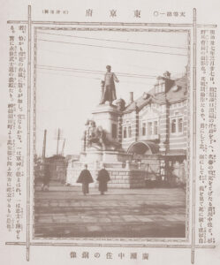 戦前の1943(昭和18)年まで秋葉原駅の神田駅寄りに存在した万世橋(まんせいばし)駅の駅前には、日露戦争で英雄となった広瀬武夫(廣瀬中佐)らの巨大な銅像が置かれるなど、戦前は“軍神”として広く知られていた(1912年「日本名勝旧蹟産業写真帖:国定小学校教科書準拠 天」~国会図書館デジタルコレクションより)