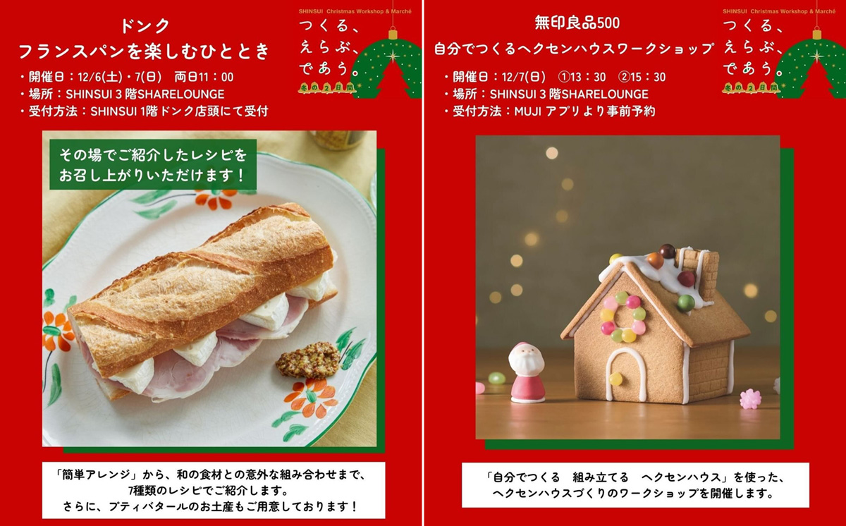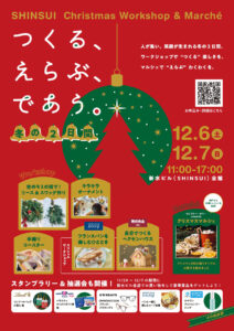 ・2025年12月6日(土)・7日(日)「つくる、えらぶ、であう冬の2日間~SHINSUI Christmas Workshop & Marche」(新水ビル内で行われる各種ワークショップとマルシェの案内)