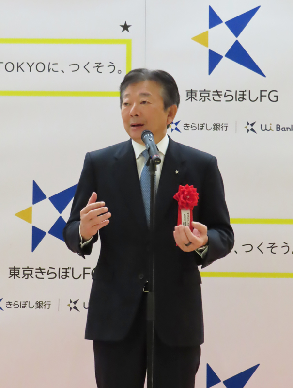 オープン時に行われた開店セレモニーには、同銀行の渡邊壽信(ひさのぶ)頭取や、地元・北砂で事業を営む株式会社丸秀工機の関桂太社長、同銀行理事で城東支社(墨田区錦糸)の横川幸也支社長が参加し、テープカットを実施。