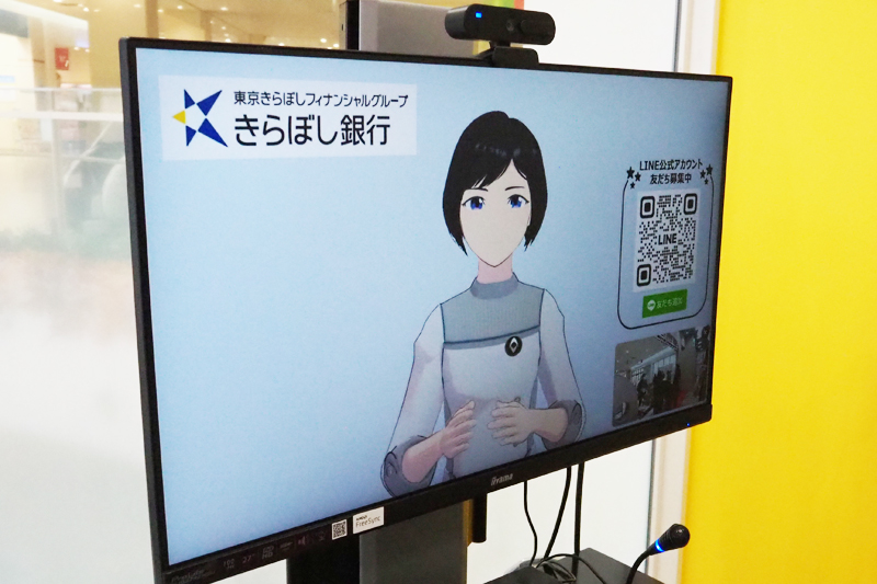 店舗の入口近くには、きらぼし銀行と、きらぼしグループのデジタルバンク「UI銀行」のアプリのデモ機を設置。