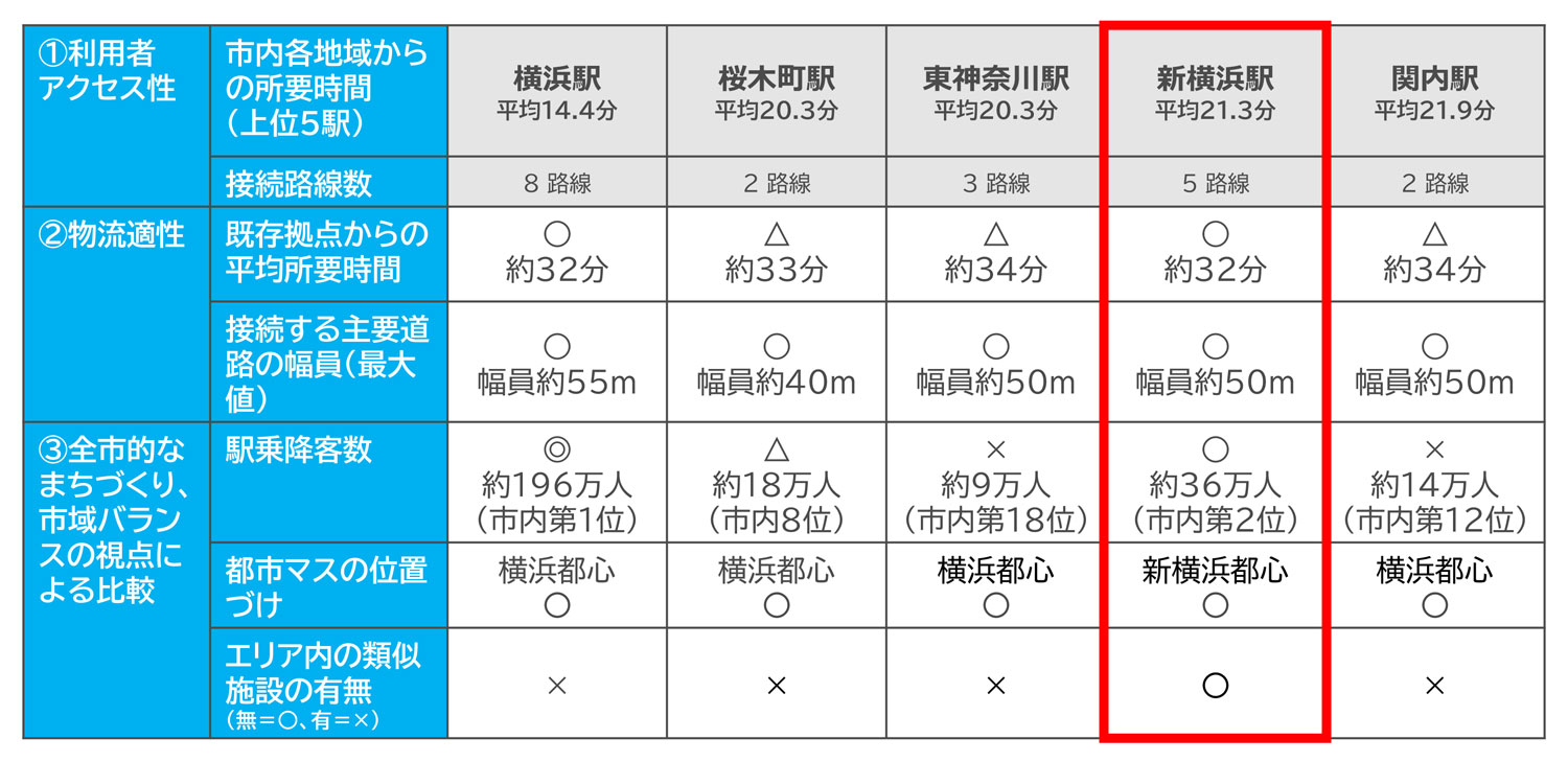 そのうえで、「全市的なまちづくり(市域バランスの視点)」という観点から横浜都心エリアには既に中央図書館が立地している一方、新横浜の周辺には図書館や博物館といった施設がない点も考慮。加えて、新図書館の立地がまちづくり推進に寄与するとの理由もあって新横浜駅を選んだとのこと。