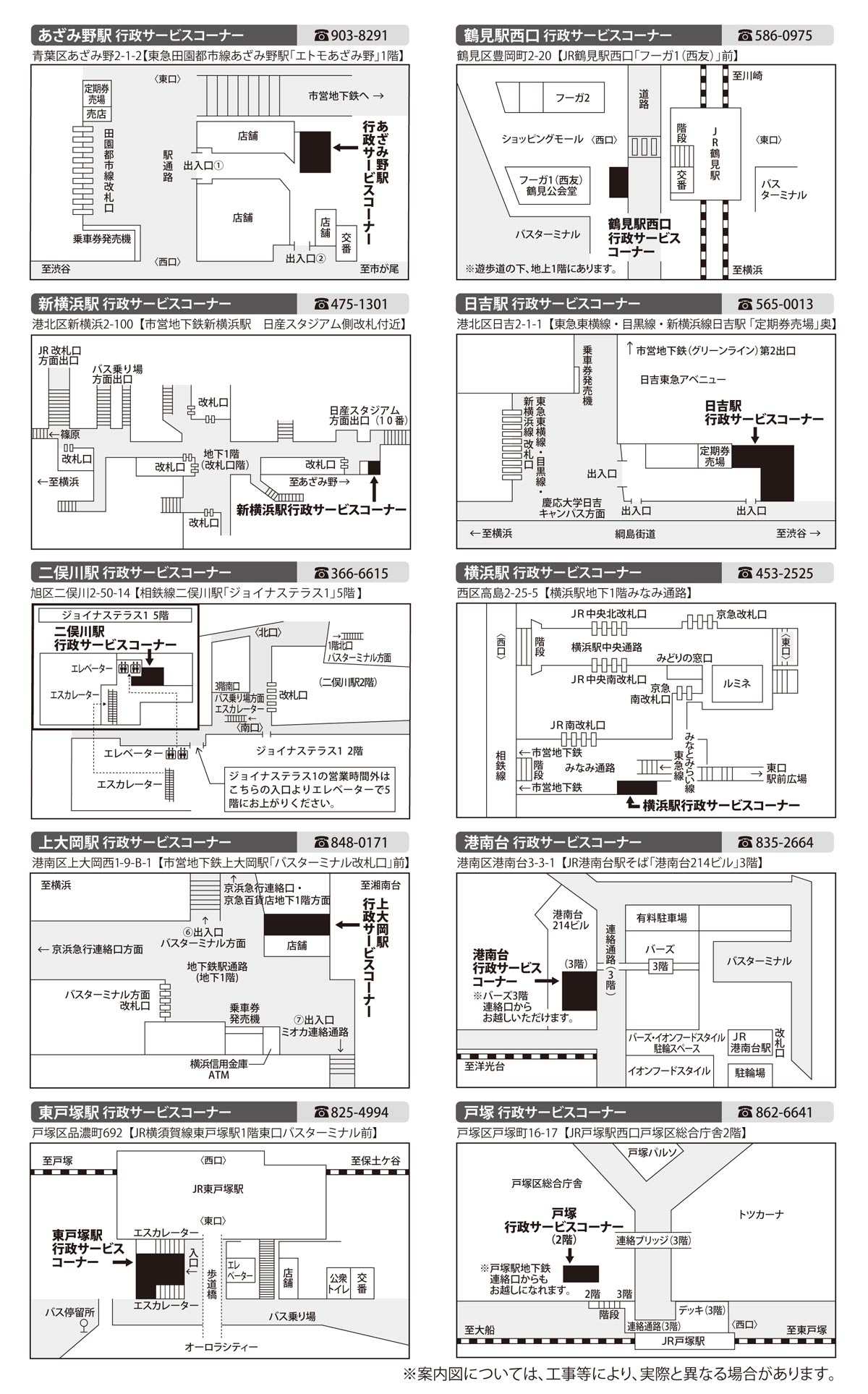 - 戸塚行政サービスコーナー(戸塚区※戸塚駅前の「戸塚区総合庁舎」2階)