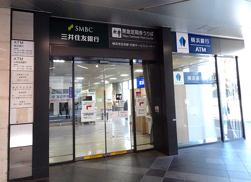 日吉駅行政サービスコーナーは駅ビルとともに歩んできたが、現在では一体化したエリアに置かれていた東急傘下の旅行会社は無くなり、改札口に近い出入口からはアクセスできず、綱島街道側の出入口のみが使える状態(2025年12月)