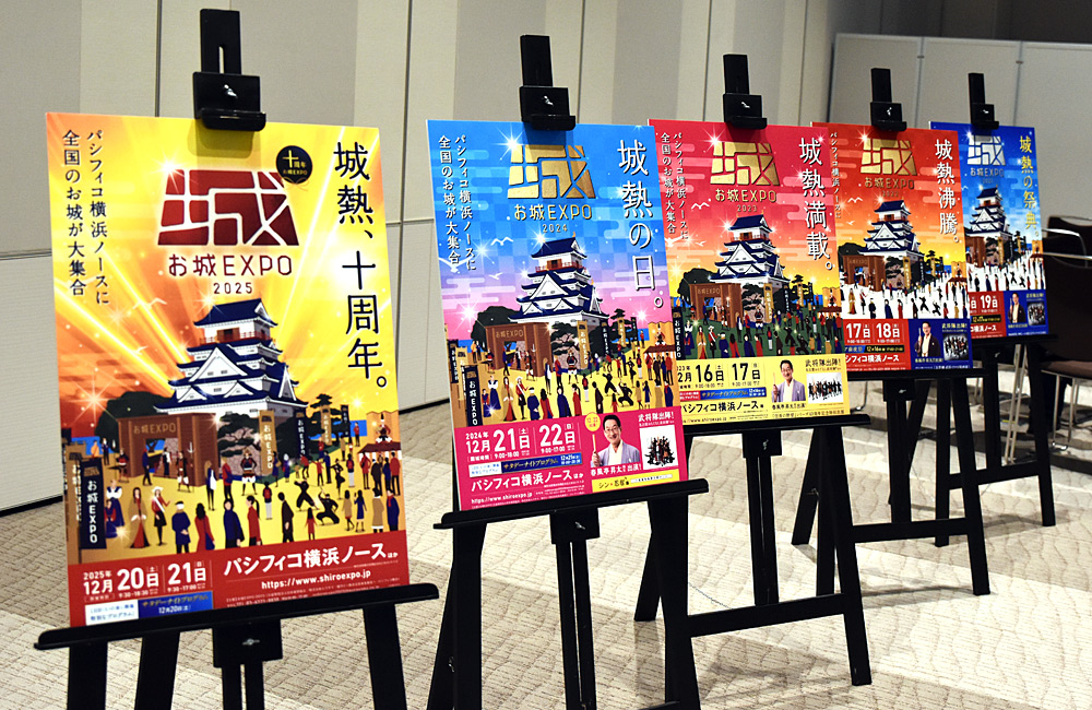 お城EXPOは2016(平成28)年12月第1回がパシフィコ横浜で開かれた大型イベントで、主催は「日本100名城」の選定などを行っている公益財団法人日本城郭協会(東京都品川区)と城の情報サイト「城びと」を運営する株式会社東北新社(東京都港区)、ディスプレイ事業者の株式会社ムラヤマ(東京都江東区)、パシフィコ横浜4者