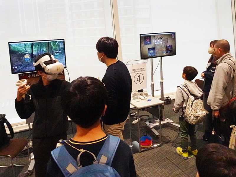 北条幻庵の企画展にも協力している航空測量企業のパスコは、これまでの発掘調査に携わった経験から、ブースではVR(仮想現実)や映像で楽しみながら分かりやすく小机城を伝える体験スペースを開設。同社の精細航空写真を使って、横浜市内にある城址の位置をマッピングする取り組みも行っています。