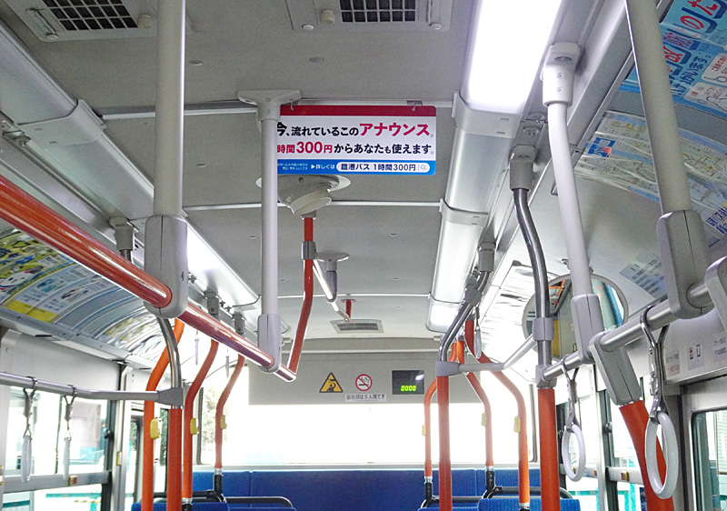 もう一つ、オンライン更新と合成音声の導入で大きく進化したのがバス車内に流される「車内アナウンス広告」でした。