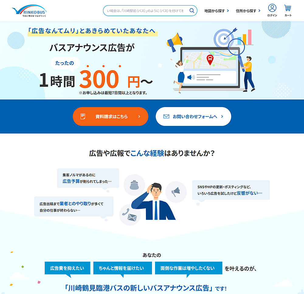 ・「臨港バスの新しいアナウンス広告が始まります」(広告の案内・申込サイト、株式会社ケイエムアドシステム)