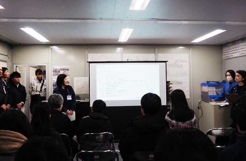 対象とした中学生・高校生や同行する保護者を含めた10数名が参加、来年(2027年)3月末の完成を目指す新しい市営住宅が作られる「リアル」を体感する時間を共有しました。