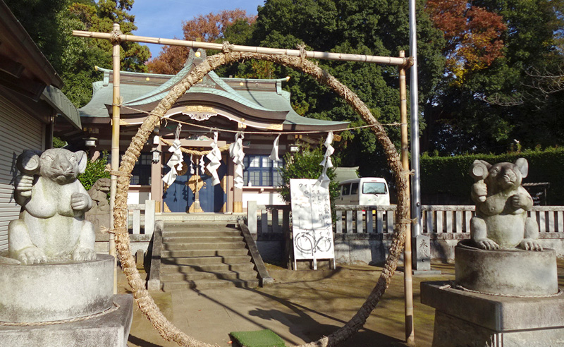 高台にある北新羽杉山神社では、農地に囲まれた周辺風景とともに、狛犬ならぬ“狛ネズミ”も見どころです。