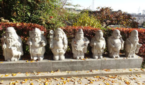 光明寺にある七福神の石像(港北ボランティアガイドの会提供)