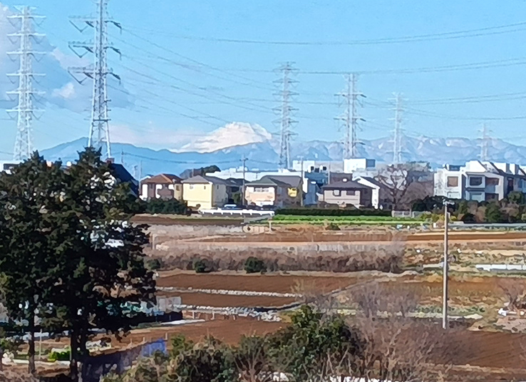 「第三京浜」越しに見える富士山(港北ボランティアガイドの会提供)
