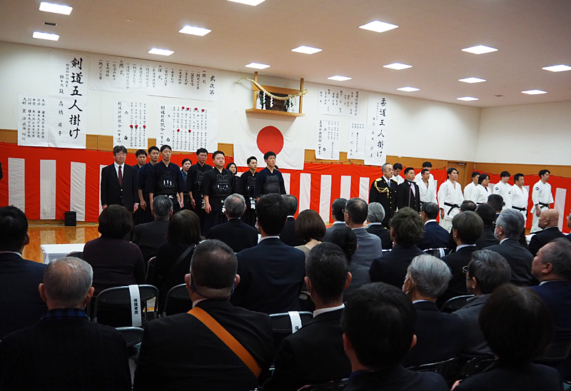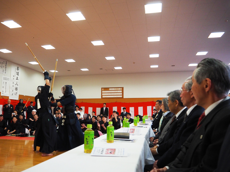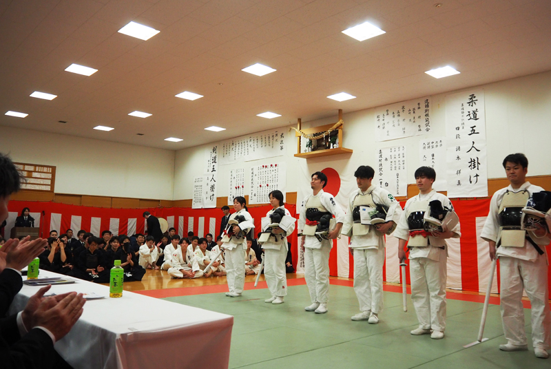 港北高校のみならず、区内にある全高校に、武道始式での恒例となっている「対抗試合」への参加を呼び掛けたところ、応じた同校、そして日大高校の柔道部・剣道部員による初の対戦が実現するに至ったといいます。