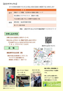 今回、新規に移動・外出支援の担い手を募集する「運転者講習」を新たに企画したもので、「地域の支えあいによる移動支援を維持するため、力をお貸しいただければ」(同)と参加を呼びかけています。