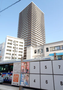 新綱島駅の地上部に建つ再開発ビル(写真後方)の4階にある「ミズキーホール」の期日前投票所は1月31日(土)に開設される(1月27日、新綱島駅付近)