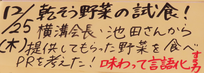 「地産地消」の理念で地域の生産者から廃棄予定の野菜を提供してもらうチャレンジも(教室掲出の貼り紙より)