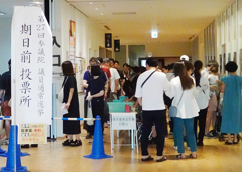 昨年7月の参院選時には期日前投票所が大混雑し、30分以上の待ち時間となることも(イメージ、2025年7月)