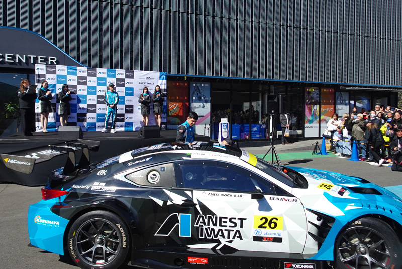 また、傘下の「アネスト岩田レーシング(ANEST IWATA Racing)」を通じ2023年4月から参戦している自動車レース「Super GT(スーパーGT)」の新体制発表会も兼ねており、モータースポーツファンも多数詰め掛けます。