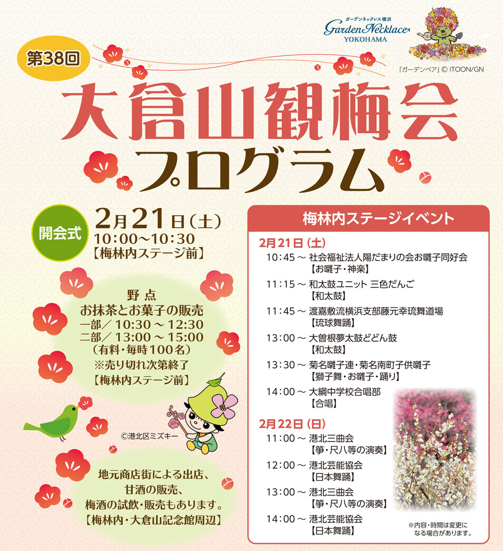 ・2026年2月21日(土)・22日(日)開催「第38回大倉山観梅会」(実行委員会事務局~港北区地域振興課内)