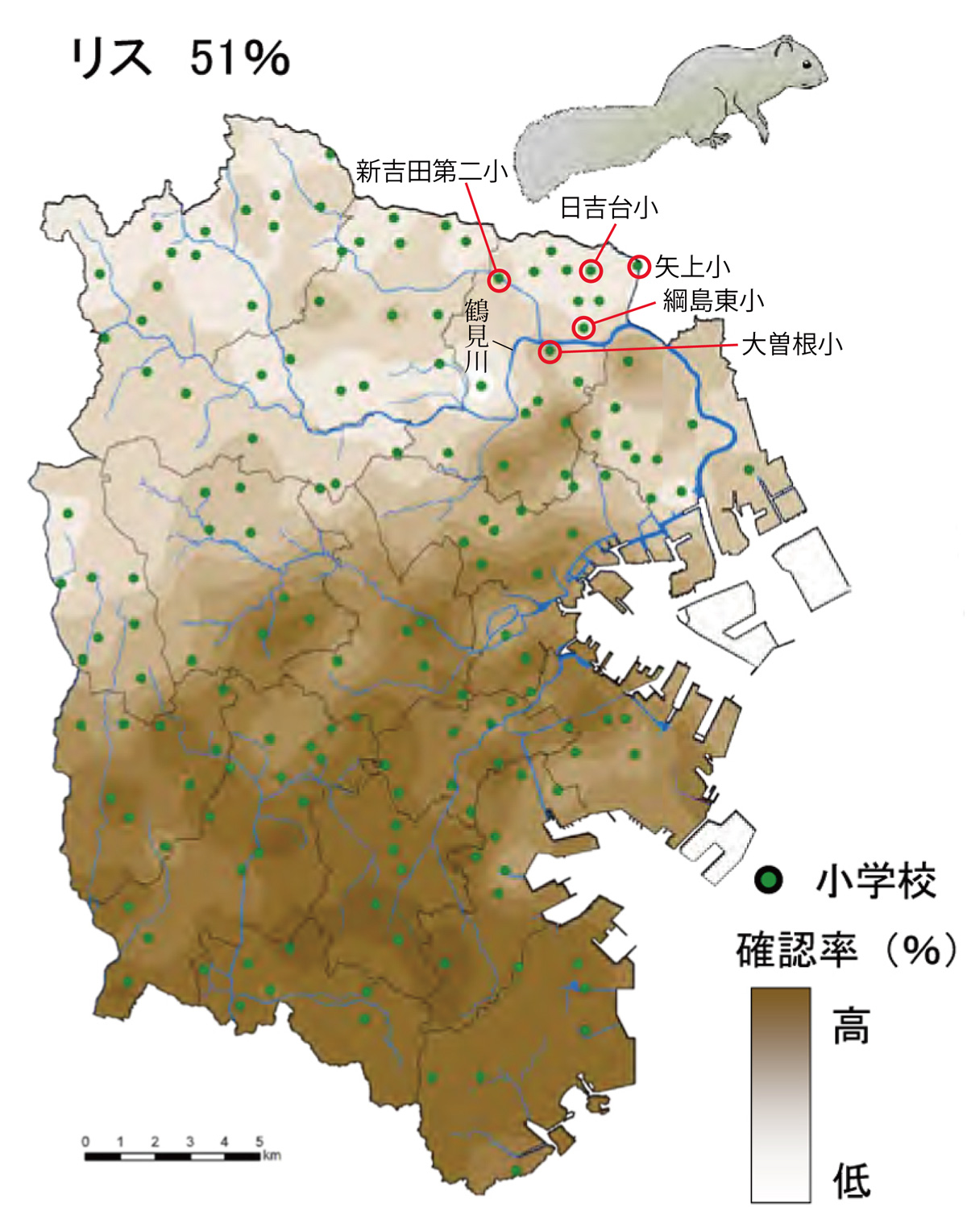 現時点では鶴見川を境に日吉や綱島の周辺では比較的少ないとみられているクリハラリス(タイワンリス)ですが、今後は川を越えて増える可能性があるとのことで、小学生の調査協力がより重要になりそうです。