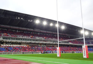 <横浜キヤノンイーグルス>3月28日も日産スタジアム開催に、開幕戦は黒星発進(新横浜新聞~しんよこ新聞、2025年12月15日、日産スタジアムで行われた開幕戦の様子)