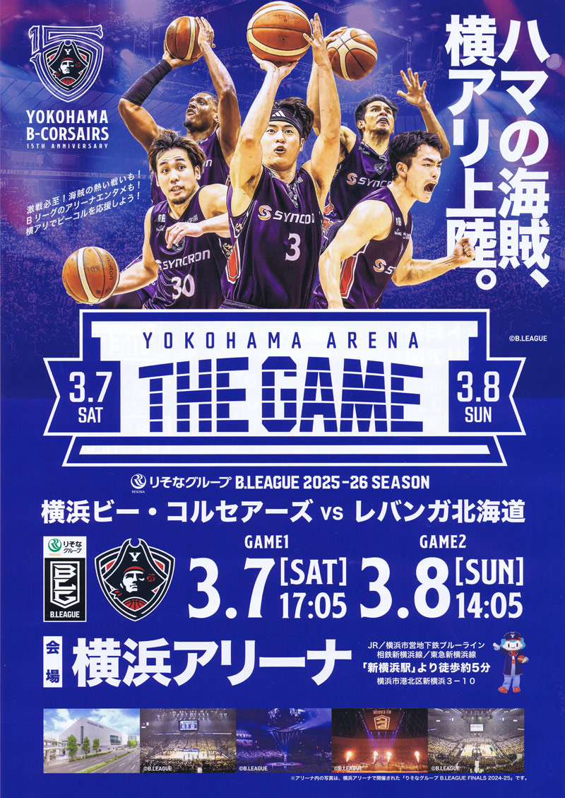 プロバスケットボール「Bリーグ」の横浜ビー・コルセアーズ(ビーコル)は来月(2026年)3月7日(土)と8日(日)に横浜アリーナを試合会場に初めて使い、レバンガ北海道との2連戦を開きます。