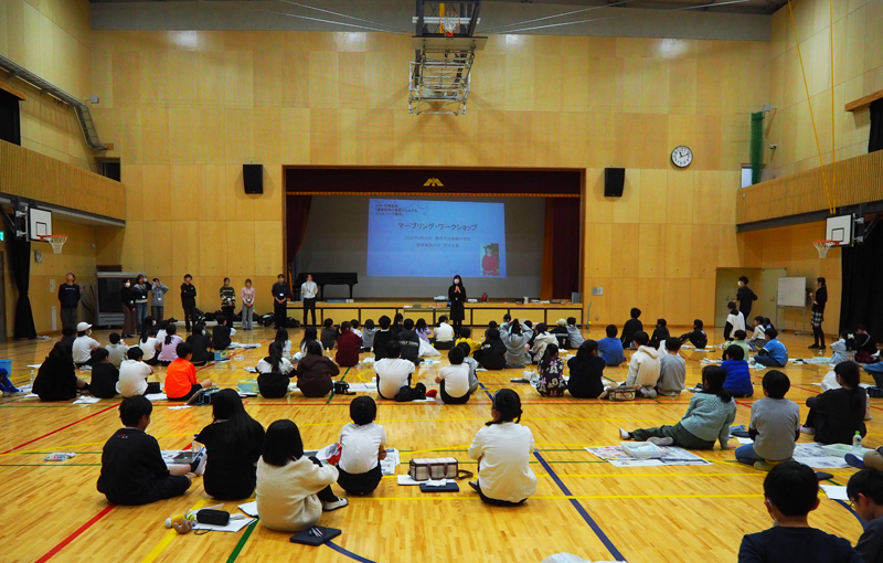 2020年4月の開校から5周年を迎えている箕輪小学校(箕輪町2)では、今月(2026年)2月10日、5年生児童約180人が、初の「マーブリング体験」に挑戦。