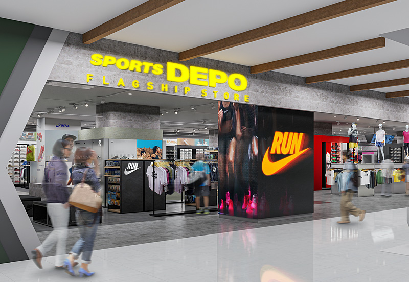 同社は北棟3階で昨年3月に「ゴルフ5(GOLF5)フラッグシップストア」と「アルペンアウトドアーズ(Alpen Outdoors)」をオープンしており、今回は1階・2階の2フロアを使ってランニング、フィットネス、野球、サッカー、バスケットボール、ラケットスポーツ(テニス・バドミントン)などの用品を揃え、約1000坪(約3300平方メートル)の売場を展開するといいます。