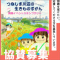 「綱島川辺の生きものずかん(図鑑)×つなしまイベントスタンプラリー」の協賛募集の主旨や掲載サイズ、金額や振込先についても掲載。協賛金は港北区役所からの補助金を使用しても足りない部分での冊子制作・印刷費のほか、スタンプラリーの運営費としても活用される予定(同)