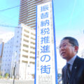 神奈川税務署(大豆戸町)や神奈川県税事務所(神奈川区広台太田町)、港北区役所(大豆戸町)や神奈川県納税貯蓄組合連合会などにより建てられた「振替納税推進の街」をアピールする“シンボル塔”を、綱島商店街連合会(中森伸明会長)の支援により刷新。