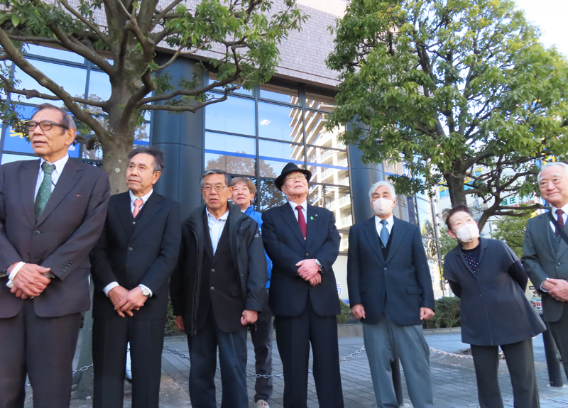 まずは神奈川税務署の黒木総一郎署長(最左)から「皆様のご理解のもと、非常に目立つ場所に、これだけの素晴らしい“キャッシュレスタワー”が建っているところも、なかなか、管内を見渡してもない。キャッシュレスの推進に向けて、ご協力いただきありがとうございます」との言葉が述べられた