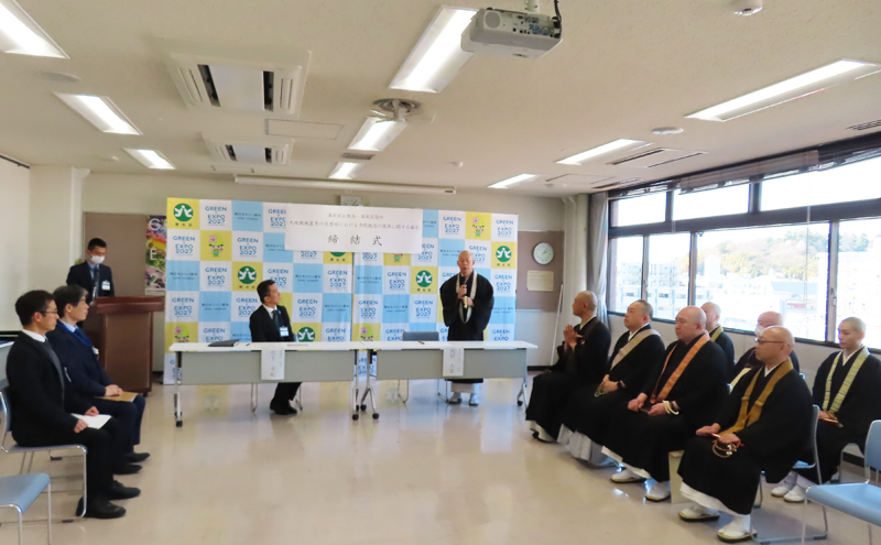その上で、今回の協定締結に至ったことについて、「45寺院というネットワークの領域もかなり広いものを期待できる上、公共施設よりも近い方は安心されるのではないか。仏教会の皆様のあたたかいご理解とご協力に感謝したい」と、日頃から地域の歴史文化を継承し、地域住民に“寄り添う”存在としての活動を行う各寺社への敬意、そして感謝の想いを熱く伝えていました。