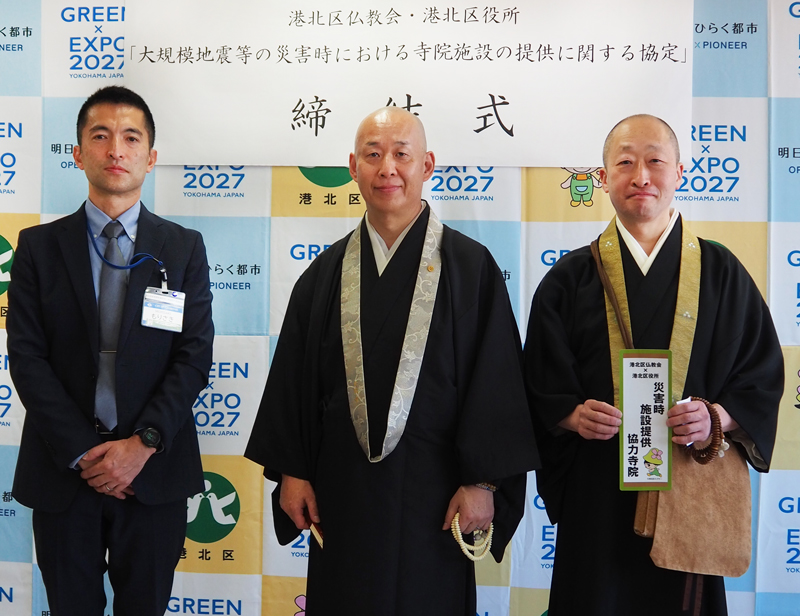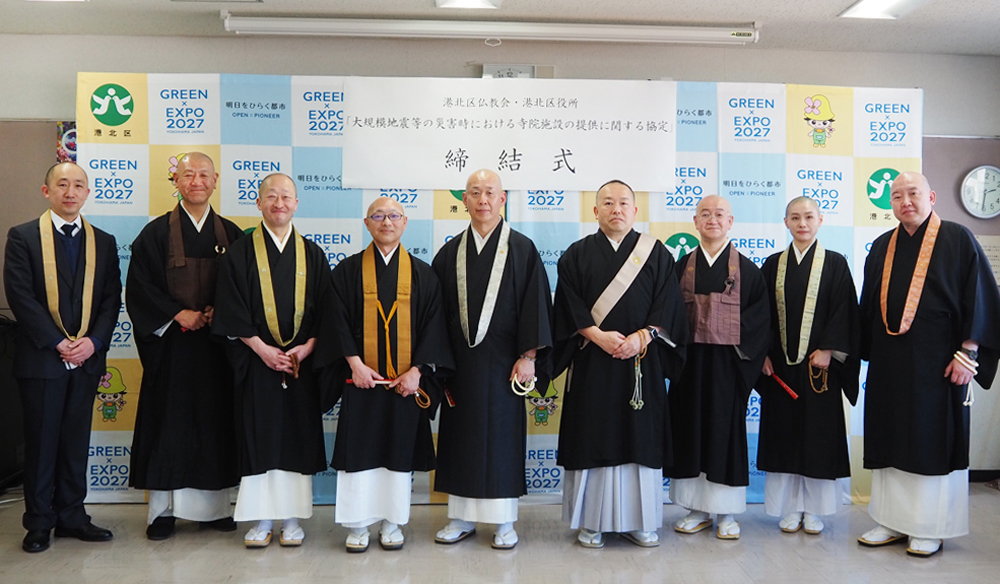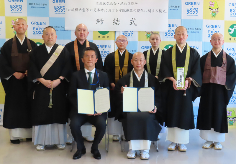 横浜市内で最大の45寺院が加盟する「港北区仏教会」は、今週(2026年)3月16日午後、港北区「大規模災害時の寺院施設の提供に関する協定」を締結。